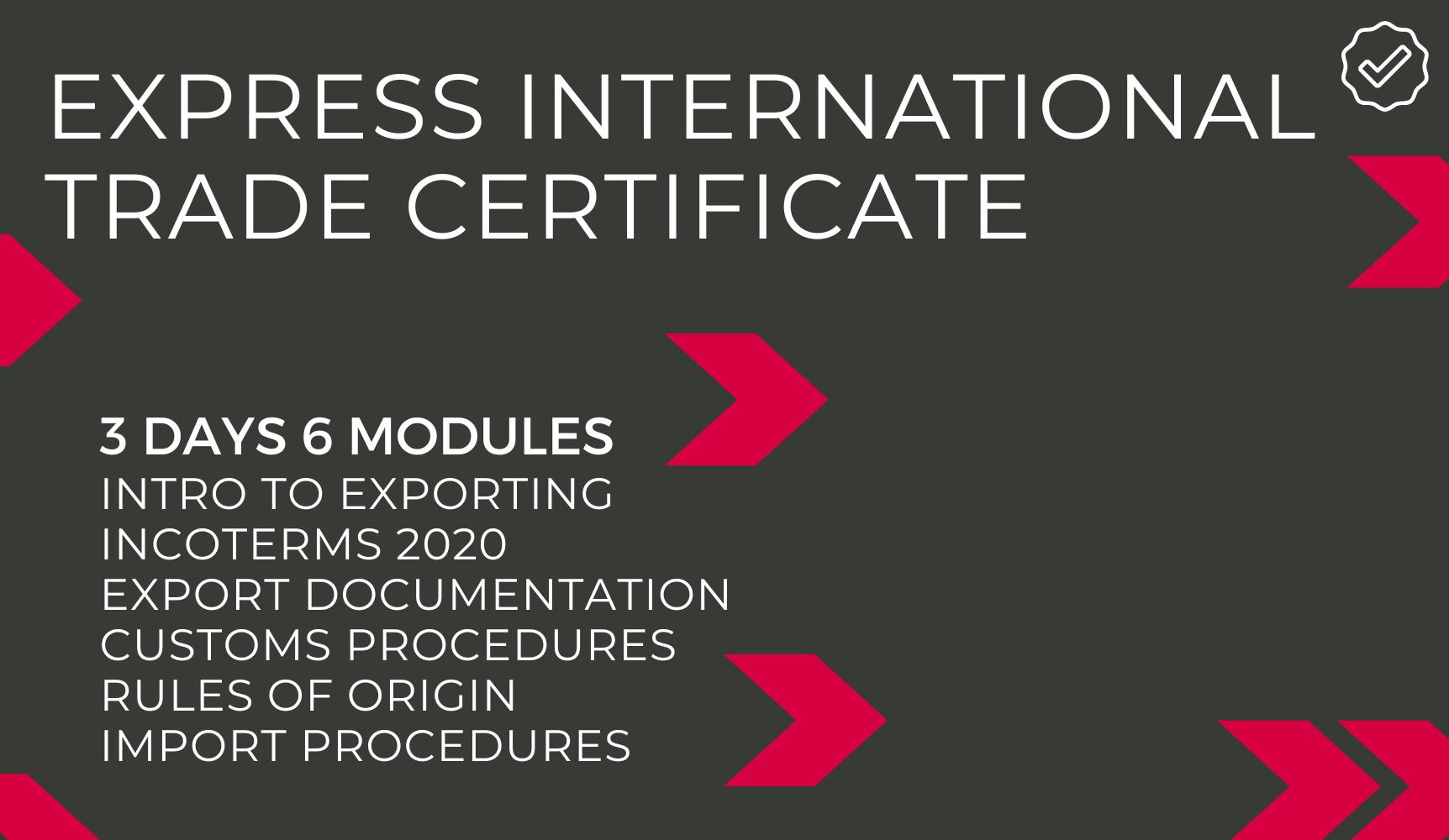 Our Express International Trade Certificate program condenses six essential modules into just three days, providing you with a comprehensive understanding of both fundamental and intricate aspects of international trade. This program is designed to equip you with practical tools and knowledge to avoid costly mistakes, stay compliant with HMRC procedures, and thrive in global markets.